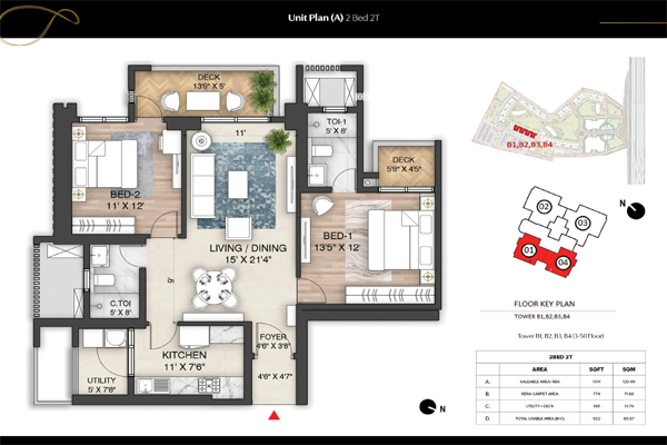 Prestige City Mulberry offers a range of spacious apartment layouts specifically created to meet the needs of different families. The development offers an elegantly designed 2-BHK 3-BHK, 4-BHK and 2-BHK lavish apartments that combine modern design with large living spaces. This two BHK apartments in Ghaziabad which are available in this building are ideal for young professionals newlywed couples or families seeking chic yet practical homes. The apartments have a comfortable dining and living space and spacious kitchen with a stylish design, and modern bathrooms that are fitted with high-end fixtures. The balconies let the sun and air in the home, creating an airy living space.