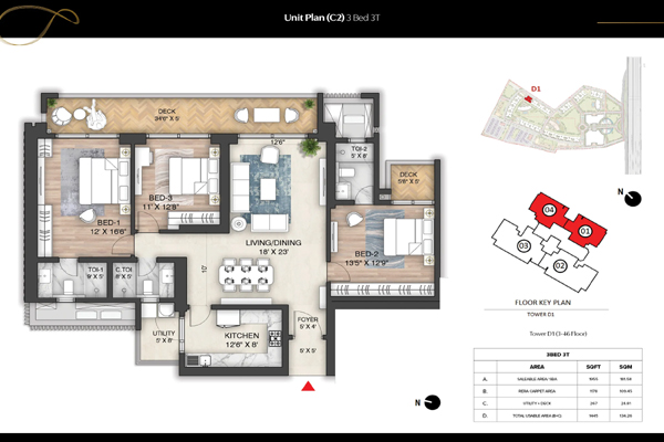 Prestige Oakwood provides an elegantly designed 3 BHK homes at Siddharth vihar which offer the ideal combination of luxury and practicality and space. These residences are ideal for families searching for a large living area within a thriving township. The apartments are spacious areas for living and dining which create a warm, cozy atmosphere for everyday life or social occasions. Bedrooms are made to offer the privacy and convenience you seek, while large windows let light along with fresh air flow throughout the home. Modern kitchens have ample storage space as well as everyday tasks which makes them practical and stylish. Each apartment is designed to maximize space while keeping the aesthetics of the space. Residents can enjoy the serene landscapes that are well-maintained and open areas in the city.